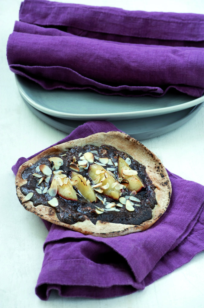 Γλυκιά πίτσα με δαμάσκηνα και αμύγδαλα