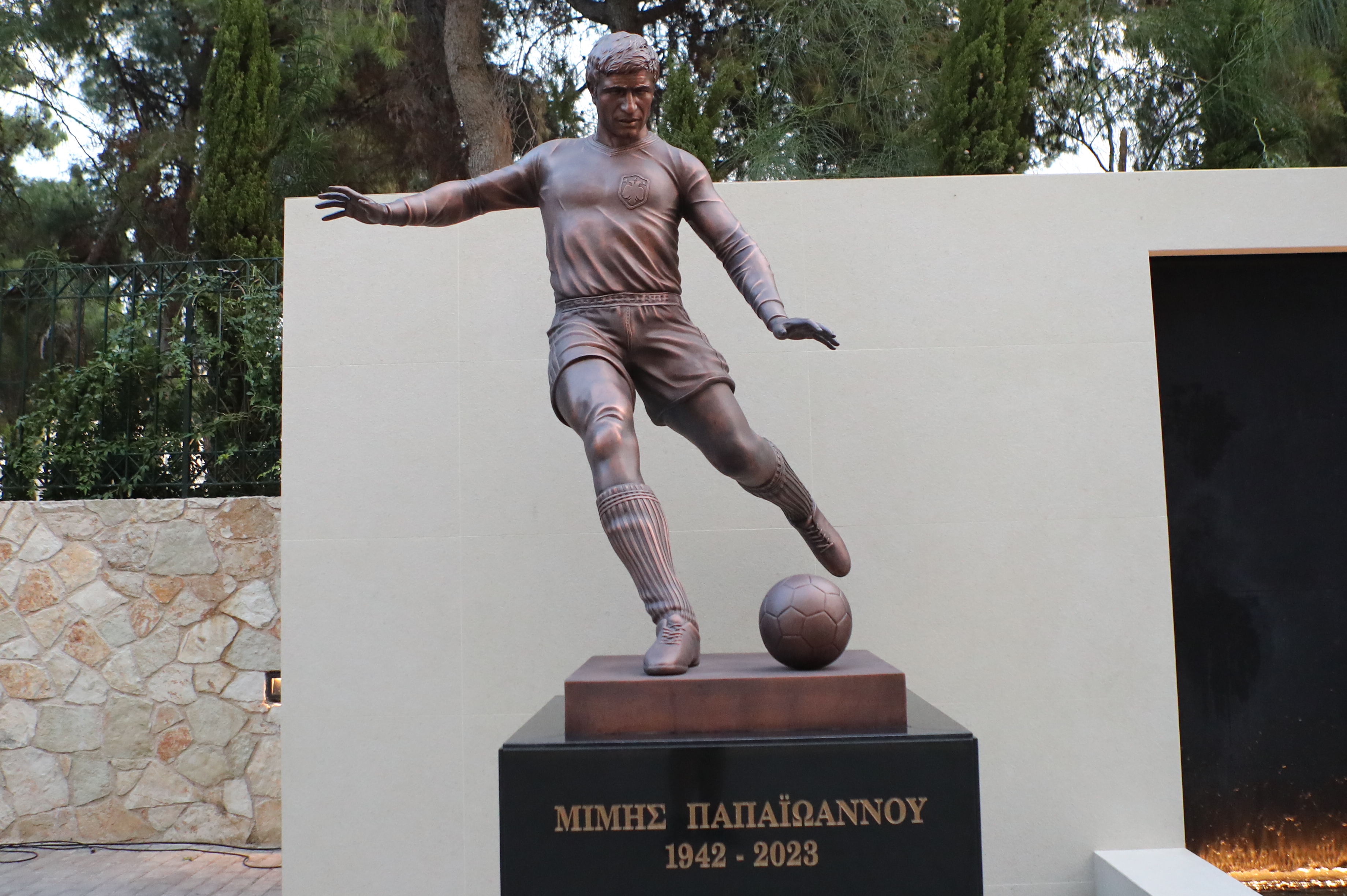 ΑΕΚ κοσμούν πλέον τον εξωτερικό χώρο αριστερά και δεξιά από τον καταρράκτη και αποτελούν ακόμα μια ένδειξη του ξεχωριστού τρόπου με τον οποίο η Ένωση τιμάει αυτούς που έγραψαν την ένδοξη ιστορία της στη Νέα Φιλαδέλφεια.