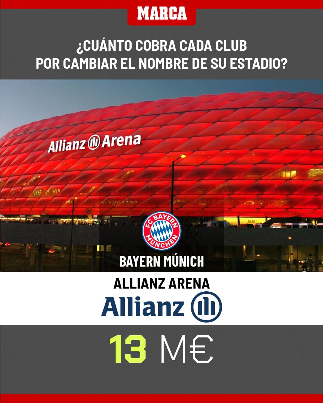 Η Allianz είναι μια από τις πιο γνωστές εταιρείες με παρουσία σε οκτώ γήπεδα σε τέσσερις ηπείρους, ενώ στην Ισπανία, ο τραπεζικός όμιλος ABANCA έχει παρόμοιες συμφωνίες με τη Θέλτα Βίγκο και την Ντερπορτίβο Λα Κορούνια.