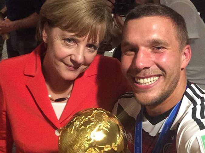 Ανάμεσα στις φωτογραφίες που ξεχωρίζουν είναι εκείνη της Γερμανίδας καγκελαρίου, Άνγκελα Μέρκελ, με τον άσο της Εθνικής Γερμανίας, Λούκας Ποντόλσκι, έχοντας αγκαλιά το τρόπαιο του Μουντιάλ, αλλά και εκείνη που η βασίλισσα της Αγγλίας, Ελισάβετ, κάνει... photobombing.