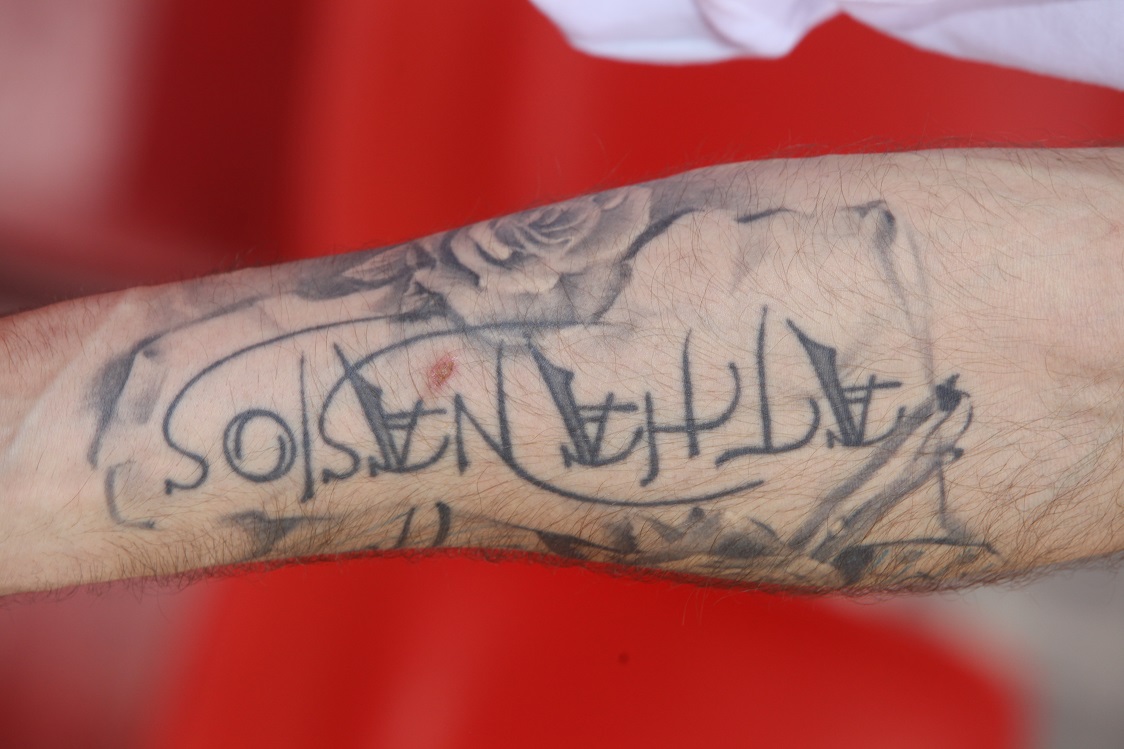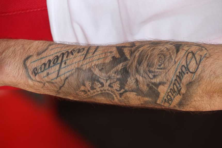 Το πρώτο του τατουάζ κλείνει πλέον… δεκαετία στο χέρι του. Και φυσικά αφορούσε την απώλεια του πατέρα του, ο οποίος έφυγε από τη ζωή το 1997. Ο αρχηγός του Θρύλου έκτοτε έχει κάνει ακόμη δύο τατουάζ και όλα αφορούν την οικογένεια του. Τη σύζυγο του και τα τέσσερα παιδιά του.