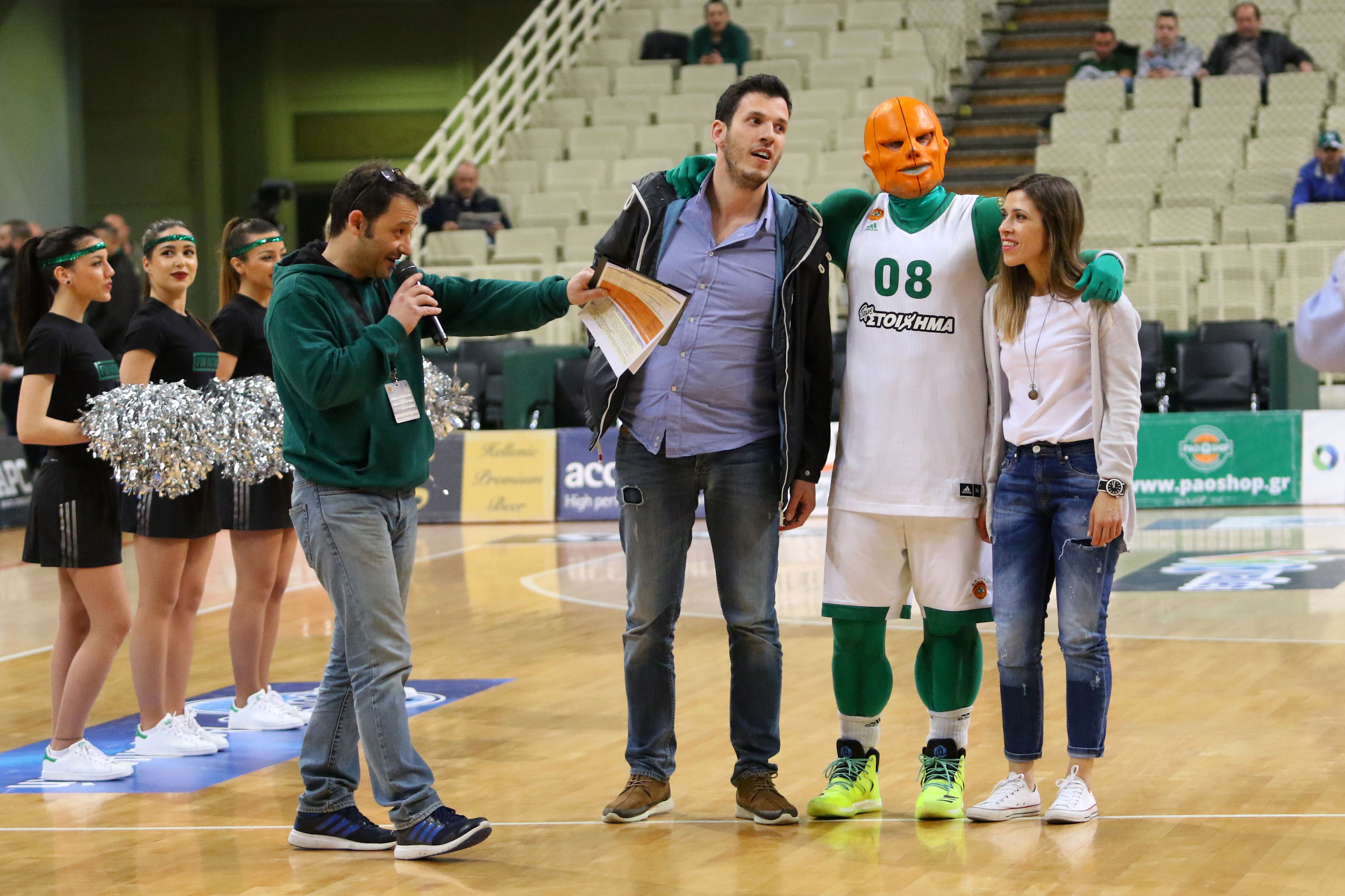 Χαμόγελα και δάκρυα χαράς στο ΟΑΚΑ! Στο ημίχρονο του Παναθηναϊκός - Τρίκαλα, η μασκότ του «τριφυλλιού», Mr. Green, κάλεσε κοντά του ένα νεαρό ζευγάρι, τον Γιώργο και την Γιώτα.