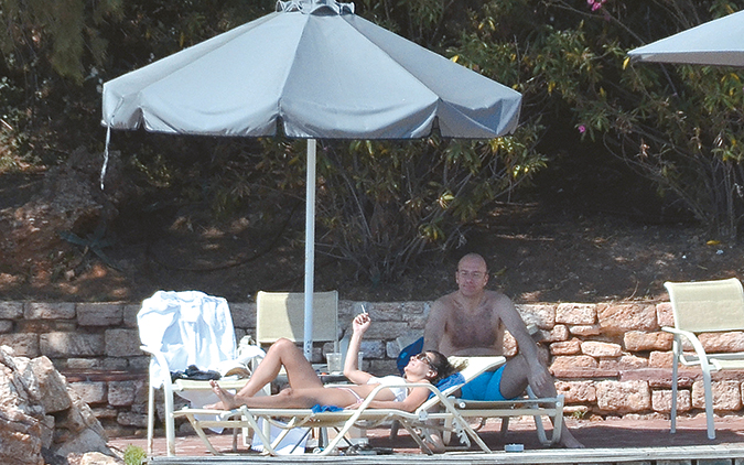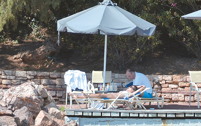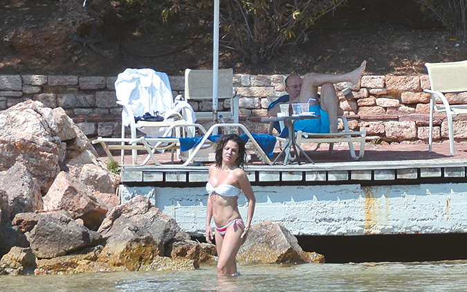 Στη συγκεκριμένη παραλία έφτασαν νωρίς το μεσημέρι και έφυγαν αργά το απόγευμα. Παρά τα όσα λέγονται για την ευτυχισμένη περίοδο που διανύουν, απέφυγαν τις αγκαλιές προκειμένου να μη γίνουν στόχος των παπαράτσι. Εκείνη επιδόθηκε σε ηλιοθεραπεία ενώ εκείνος προτίμησε να παίζει με το κινητό του, στέλνοντας μηνύματα σε φίλους του, αλλά και διαβάζοντας μέσω Διαδικτύου την τρέχουσα επικαιρότητα. Η ενασχόλησή του με το κινητό κράτησε αρκετή ώρα. Ακόμη κι όταν η Δήμητρα είπε να εγκαταλείψει την ξαπλώστρα και να δροσιστεί με μια βουτιά στη θάλασσα, επιδεικνύοντας το μοδάτο μαγιό της, εκείνος, ως κλασικός φαν της τεχνολογίας, εξακολούθησε το σερφάρισμα στο Ιντερνετ.