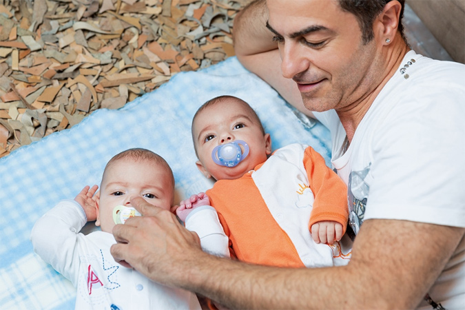Ήταν 2011, όταν η Στέλλα Φιλίππου, σύντροφος του Νεκτάριου Σφυράκη εδώ και 17 χρόνια, έμεινε έγκυος στο πρώτο της παιδί, τον Μανώλη, μετά από 4 αποτυχημένες προσπάθειες εξωσωματικής γονιμοποίησης. Οι δυσκολίες, όμως, που αντιμετώπισε ήταν πολλές, ήταν μια πολύτιμη εγκυμοσύνη υψηλού ρίσκου. «Η πρώτη μου εγκυμοσύνη ήταν τραγική. Άμα δεν είχα τον Πάντο (σ.σ. ο γιατρός της) στο πλευρό μου, αυτή τη στιγμή δεν θα υπήρχε ο Μανώλης. Από το δεύτερο κιόλας μήνα κινδύνευα να χάσω το μωρό. Να φανταστείς πως μπήκα στο νοσοκομείο πέντε μηνών έγκυος και βγήκα όταν γέννησα» αποκαλύπτει. Η επιμονή, αλλά και η τεράστια επιθυμία τη βοηθούν σημαντικά στο να ξεπεράσει τις δυσκολίες και να φέρει στον κόσμο το πρώτο της παιδί. Μολονότι ήταν δύσκολη κύηση, όταν ο Μανώλης έγινε 2,5 ετών, ο γιατρός της την προέτρεψε να μείνει ξανά έγκυος. Όχι ένα, αλλά δύο έμβρυα. «Τον ρώτησα αν θα έχω τους ίδιους κινδύνους με την πρώτη μου εγκυμοσύνη, αλλά μου εξήγησε πως η κάθε κύηση είναι διαφορετική. Η αλήθεια είναι πως η εγκυμοσύνη μου στα δίδυμα ήταν τέλεια. Περίπατος. Βέβαια, λόγω του αυξημένου βάρους, δεν μπορούσα να κινηθώ εύκολα, αλλά δεν μπήκα καθόλου στο νοσοκομείο έως ότου γέννησα».