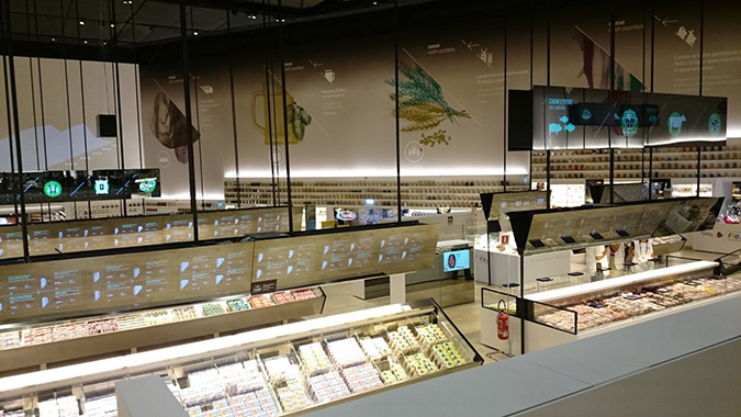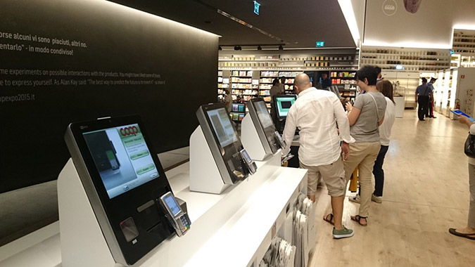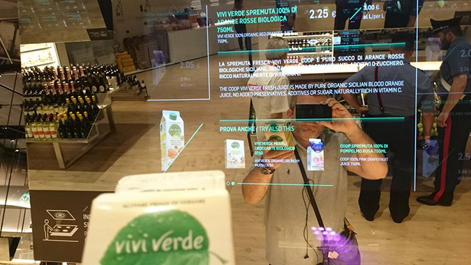 Ήδη στο Μιλάνο και στο πλαίσιο της Expo 2015 -της παγκόσμιας εμπορικής έκθεσης που διεξάγεται κάθε πέντε χρόνια σε διαφορετική πόλη και φέτος είναι αφιερωμένη στην παραγωγή και διαχείριση των τροφίμων, λειτουργεί το σούπερ μάρκετ του μέλλοντος. Εκεί όλα τα προϊόντα είναι τοποθετημένα σε διαδραστικά ράφια. Μόλις ο καταναλωτής σηκώσει μια συσκευασία, ένα μπουκάλι, ένα φρούτο ή οτιδήποτε άλλο, σχετικές πληροφορίες προβάλλονται στις οθόνες που είναι τοποθετημένες ακριβώς από πάνω.
