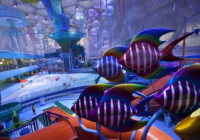 Οι Κινέζοι αξιοποίησαν καταλλήλως ένα από τα πιο εντυπωσιακά έργα που τους άφησαν οι Ολυμπιακοί Αγώνες δημιουργώντας μέσα σε αυτό ένα από τα πιο εντυπωσιακά waterparks. Ο λόγος για το μοναδικό Watercube που φιλοξένησε τους αγώνες της κολύμβησης. Σε αυτό λοιπόν τον μοναδικό περιβάλλον προσθέστε τις άκρως διασκεδαστικές νεροτσουλήθρες που σχεδιάστηκαν και κατασκευάστηκαν στο εξωτερικό όπως η Tornado, Aqualoop και Bulletbowl και τις τεράστιες μέδουσες που κρέμονται από την οροφή και τότε θα καταλάβετε γιατί ανήκει στα πιο εντυπωσιακά waterparks του κόσμου.