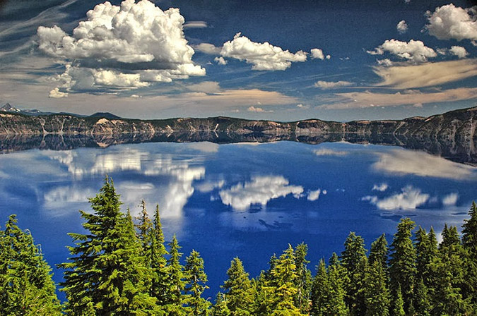 Βρίσκεται στην πολιτεία του Όρεγκον και είναι διάσημη για το βαθύ μπλε χρώμα και τα καθαρά νερά της. Κανένας ποταμός δεν ρέει προς ή από τη λίμνη ενώ το νερό που εξατμίζεται αναπληρώνεται από τις βροχοπτώσεις με τέτοιο ρυθμό ώστε τα νερά της λίμνης να ανανεώνονται κάθε 250 χρόνια.
