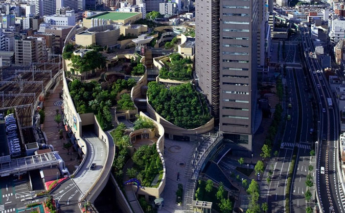 Αποτελεί αστική όαση που άνοιξε το 2003 και εκτείνεται σε πολλά επίπεδα δίπλα στο 30όροφο σύμπλεγμα γραφείων και καταστημάτων δίπλα στον σιδηροδρομικό σταθμό της πόλης. Περιλαμβάνει από λαχανόκηπους, ποταμάκια και συντριβάνια μέχρι καταρράκτες και καταλαμβάνει το χώρο του πρώην γηπέδου μπέιζμπολ της Οσάκα.