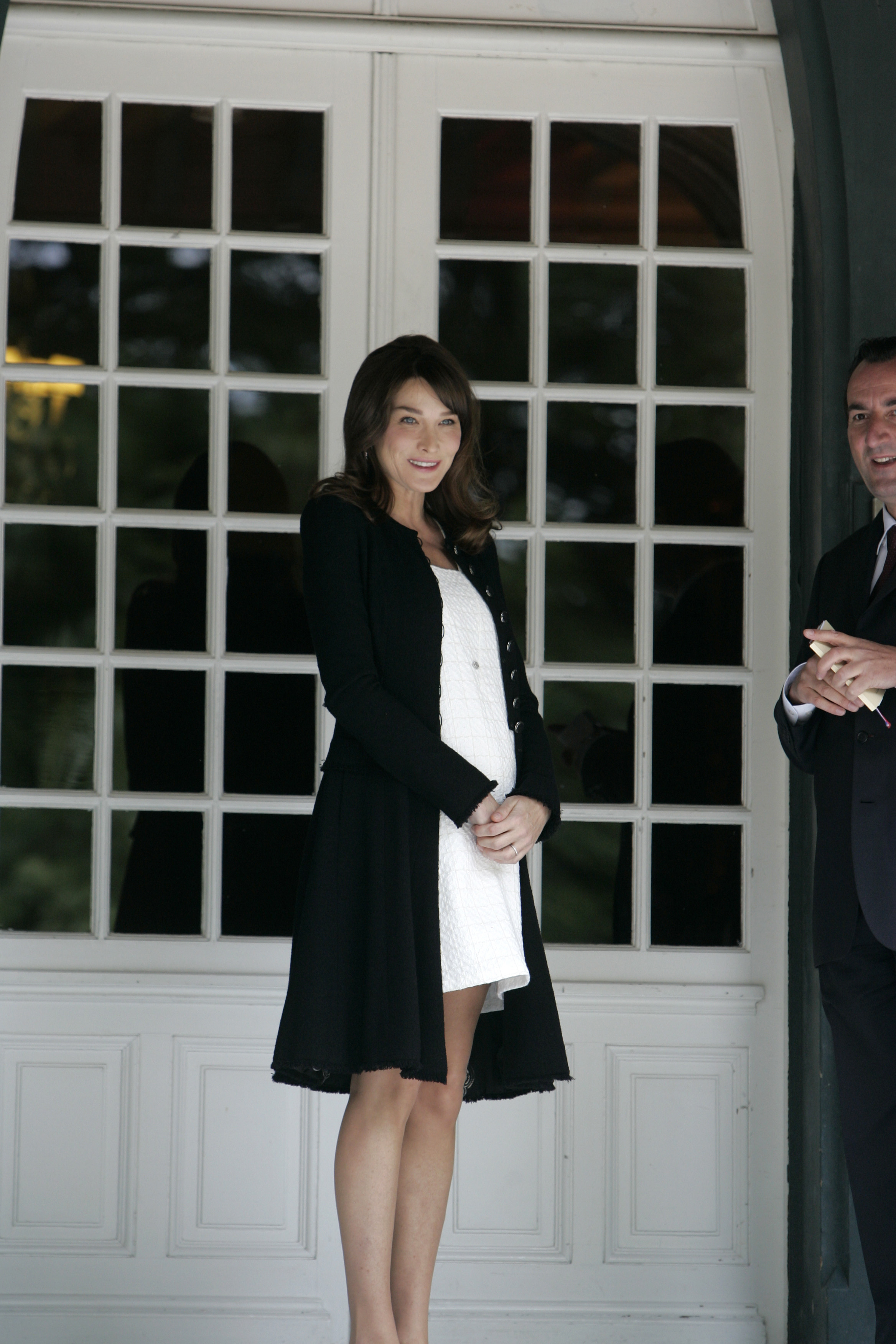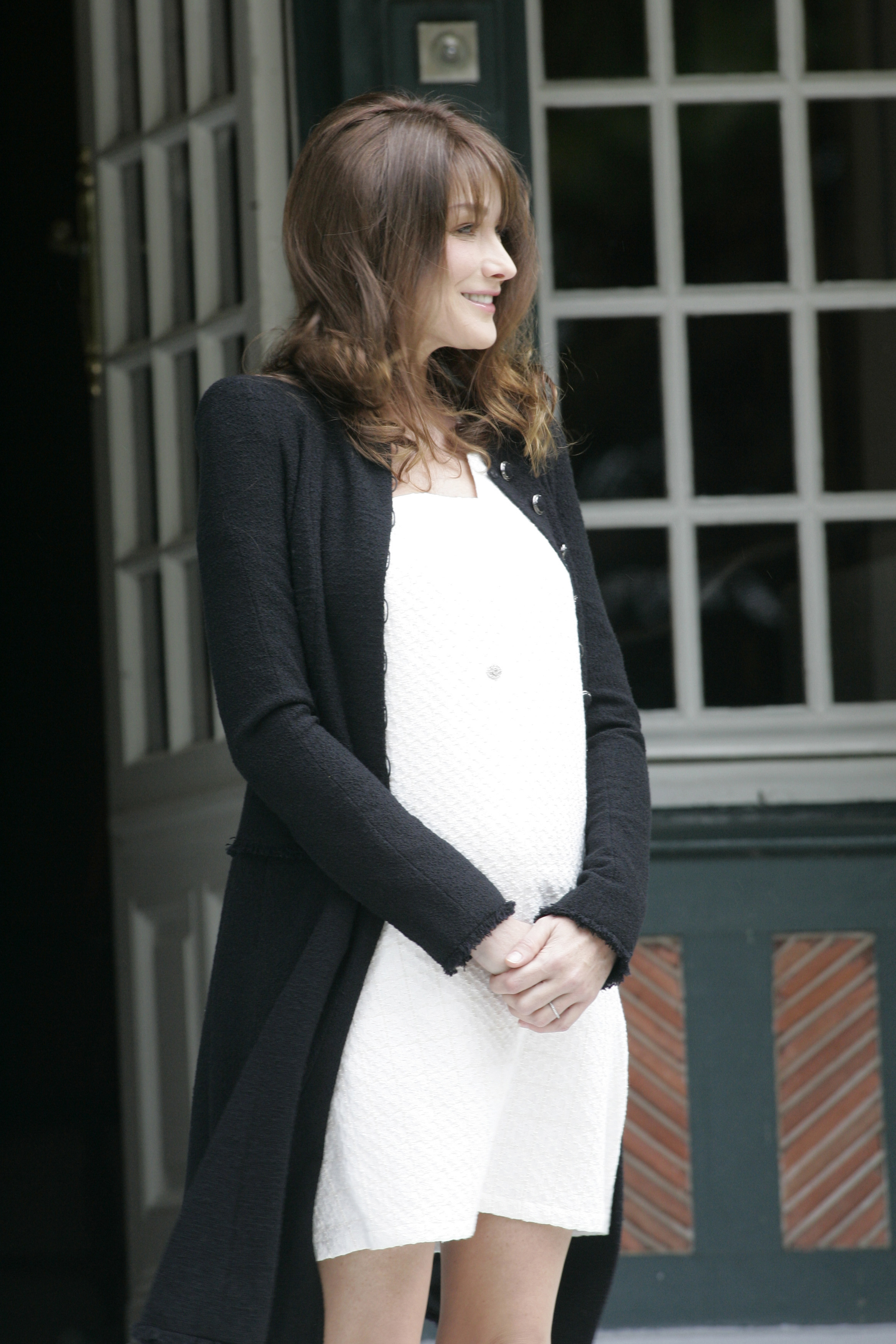 Ό,τι και να κάνει όμως, οι φωτογράφοι είναι πάντα εκεί για να την απαθανατίσουν, και έτσι, κατά την διάρκεια της διάσκεψης των G8 στην Γαλλία, η Bruni εθεάθη με ένα λευκό φόρεμα και μαύρη ζακέτα, όπου φαινόταν ξεκάθαρα ότι διανύει ήδη τους πρώτους μήνες της εγκυμοσύνης της.