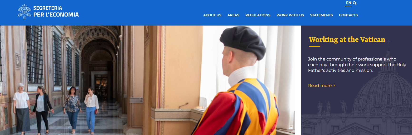 Επιπλέον, η νέα ιστοσελίδα δεν περιορίζεται στις αγγελίες εργασίας. Παρέχει αναλυτική πληροφόρηση για τις αρμοδιότητες και τη λειτουργία του Dicastery, τους μηχανισμούς ελέγχου και εποπτείας σε οικονομικά και διοικητικά ζητήματα καθώς και τους κανόνες διαφάνειας στις δημόσιες συμβάσεις, όπως αυτοί θεσπίστηκαν το 2020.