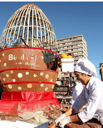 Ζαχαροπλάστες στο San Carlos de Bariloche της Αργεντινής γλυκαίνουν τους περαστικούς, με κομμάτια από το πελώριο, σοκολατένιο αυγό των 8,5 μέτρων.