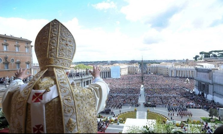 Ο Πάπας Βενέδικτος XVI κατά τη διάρκεια της ομιλίας του (Urbi et Orbi) από το μπαλκόνι της Βασιλικής του Αγίου Πέτρου στη Ρώμη, στους πιστούς, μετά τη λειτουργία του Πάσχα. Ζήτησε να μπει τέλος στην αιματοχυσία στη Συρία και στην ευρύτερη Μέση Ανατολή.