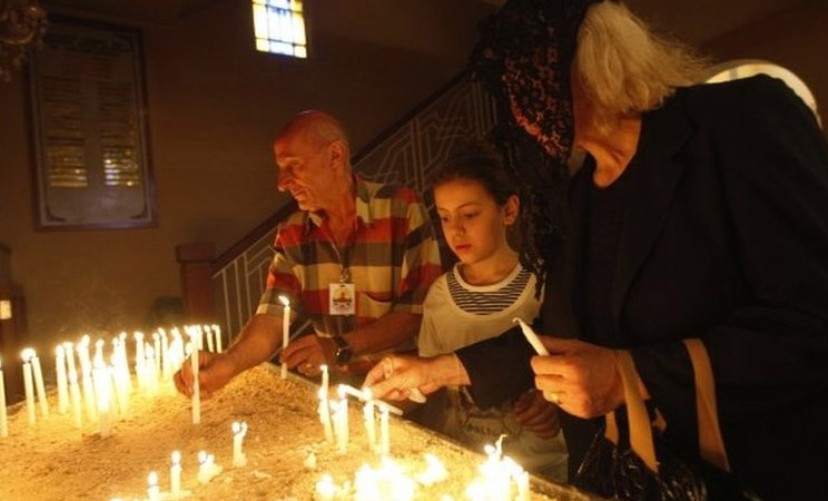 Οι εναπομείναντες Χριστιανοί Καθολικοί του Ιράκ, ανάβουν τα κεράκια τους σε Αρμενική Εκκλησία της Βαγδάτης, λίγο πριν αρχίσει η λειτουργία.