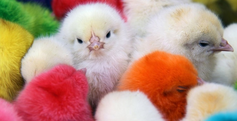 Βαμμένα κοτοπουλάκια, σε παζάρι της Δαμασκού, στη Συρία.