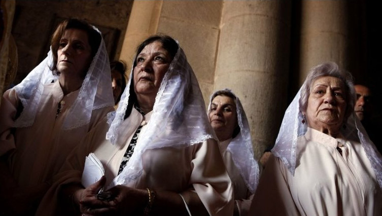 Κυριακή των Βαΐων: Γυναίκες εν ώρα προσευχής στην εκκλησία του Παναγίου Τάφου, στην Παλιά Πόλη της Ιερουσαλήμ.