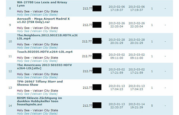 Η ιστοσελίδα TorrentFreak έδωσε στη δημοσιότητα στοιχεία για τις ταινίες που «κατέβηκαν» το 2012 μέσα από το Βατικανό και όπως προκύπτει κάποιος κατεβάζει πορνοταινίες!
