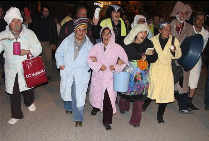 Οι Τούρκοι είναι ιδιαίτερα επινοητικοί στους τρόπους που διαμαρτύρονται. Πολλοί θυμούνται τους δερβίσηδες-διαδηλωτές αλλά και τον «standing man» της πλατείας Ταξίμ που δημιούργησε τάση στις ανά τον κόσμο διαδηλώσεις. Τώρα σειρά έχουν οι διαδηλωτές με τα μπουρνούζια, μία αυθόρμητη εκδήλωση θυμού κατοίκων μίας περιοχής της Αγκυρας που έμεινε χθες για ώρες χωρίς νερό.