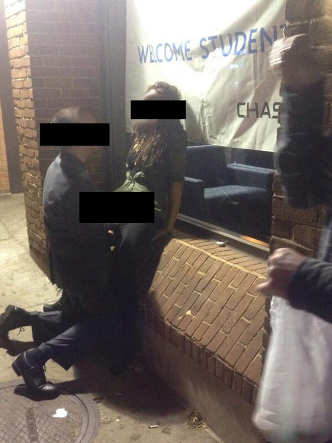 Το ζευγάρι ήταν ηλικίας 20 ετών και ο άνδρας έκανε μπροστά στα μάτια των περαστικών στοματικό έρωτα στη γυναίκα. Σύμφωνα πάντως με τα σχόλια των χρηστών στο Twitter, δεν φαίνεται πως η γυναίκα λέει την αλήθεια. Ένας από τους συμφοιτητές της μάλιστα υποστηρίζει ότι το στοματικό σεξ έγινε με την συγκατάθεσή της και απ΄ότι φάνηκε το... απόλαυσε ιδιαίτερα.