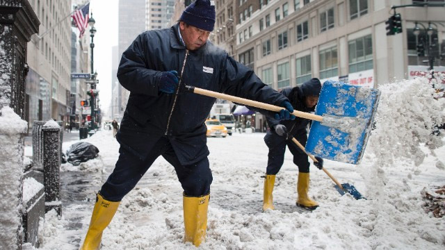 Ένα παχύ στρώμα χιονιού κάλυψε την Παρασκευή τη Νέα Υόρκη με το ύψος του να ξεπερνά τα 15 εκατοστά στο Σέντραλ Παρκ. Στην Τάιμς Σκουέρ, οι ενθουσιασμένοι τουρίστες έπαιζαν χιονοπόλεμο, ενώ η θερμοκρασία έπεσε στους -10 βαθμούς Κελσίου. Τη νύχτα αναμένεται να πέσει στους -18 βαθμούς Κελσίου και ο νέος Δήμαρχος Μπιλ ντε Μπλάζιο απηύθυνε έκκληση στους κατοίκους να παραμείνουν στα σπίτια τους.