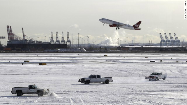 Περισσότερες από 850 πτήσεις έχουν ακυρωθεί, εκατοντάδες άλλες έχουν καθυστερήσει από ή προς τα τρία αεροδρόμια της Νέας Υόρκης – το Νιούαρκ, το Λαγκάρντια και το JFK. Το αεροδρόμιο Κένεντι έκλεισε για τρεις ώρες λόγω της μηδενικής ορατότητας και της σφοδρής χιονόπτωσης. Ένας διάδρομος τροχοδρόμησης άνοιξε το μεσημέρι, όταν ο ήλιος βγήκε στον ουρανό της Νέας Υόρκης.