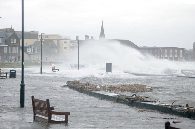 Οι ισχυρές παλίρροιες, οι σφοδρές βροχοπτώσεις και οι θυελλώδεις άνεμοι ήταν τα κύρια χαρακτηριστικά της κακοκαιρίας που προκάλεσε την Παρασκευή εκτεταμένες πλημμύρες στις νοτιοδυτικές περιοχές της Αγγλίας, στην Ουαλία και τη Σκωτία, ενώ οι αρχές απηύθυναν έκκληση στους πολίτες να μην πλησιάζουν στις ακτές.