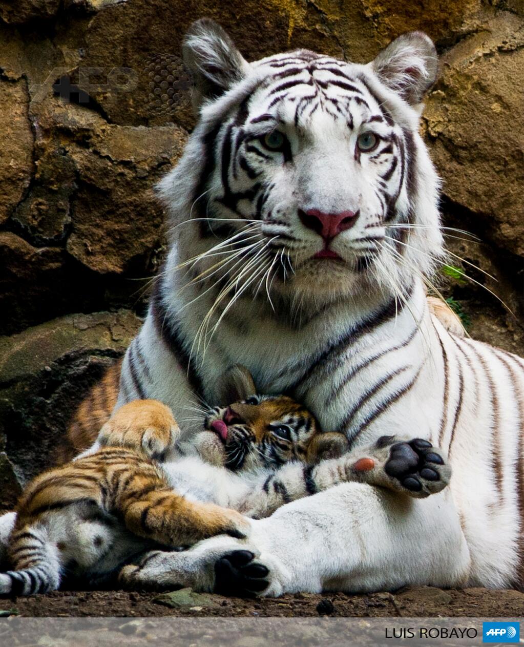 Η σταρ του ζωολογικού κήπου Cali στην Κολομβία, η Indira απαθανατίζεται τη στιγμή που κρατά αγκαλιά ένα από τα μωρά της και η φωτογραφία της κάνει τον γύρο του κόσμου. Η πανέμορφη λευκή τίγρης της Βεγγάλης με τα μπλε μάτια, έφερε στη ζωή τον περασμένο Νοέμβριο τρία υγιέστατα μωρά, που αγαπήθηκαν από την πρώτη στιγμή τόσο από τους εργαζόμενους του ζωολογικού κήπου όσο και από τους επισκέπτες. Οι υπέυθυνοι του ζωολογικού κήπου είχαν τοποθετήσει κάμερες για να βιντεοσκοπήσουν την γέννηση των τριών μωρών, που τελικά αποφάσισαν να κρατήσουν για να παρακολουθήσουν την πρόοδο των μικρών τίγρεων. Σύμφωνα με τους υπεύθυνους του Cali zoo, η Indira είναι μία πολύ στοργική μητέρα που κρατάει τα μωρά της συνεχώς κοντά της.
