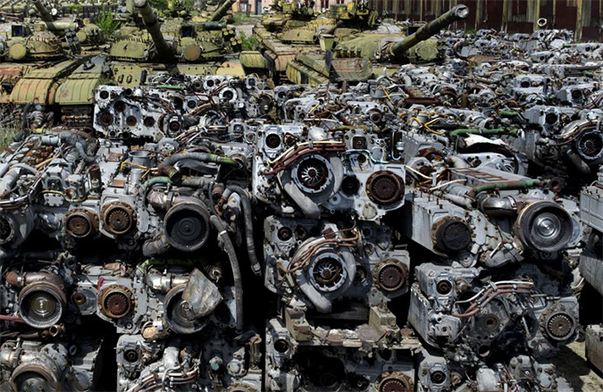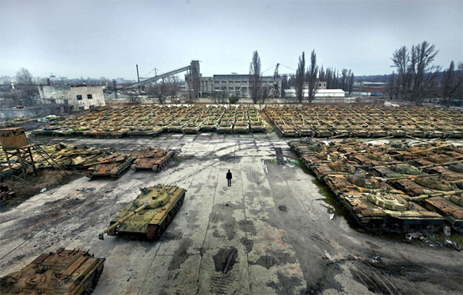 Την ώρα που η Ουκρανία βρίσκεται στο χείλος του πολέμου, η βρετανική εφημερίδα «Daily Mail» θυμίζει το «νεκροταφείο» τεθωρακισμένων αρμάων, που βρίσκονται σε μυστική τοποθεσία έξω από το Χάρκοβο.