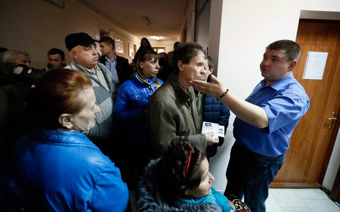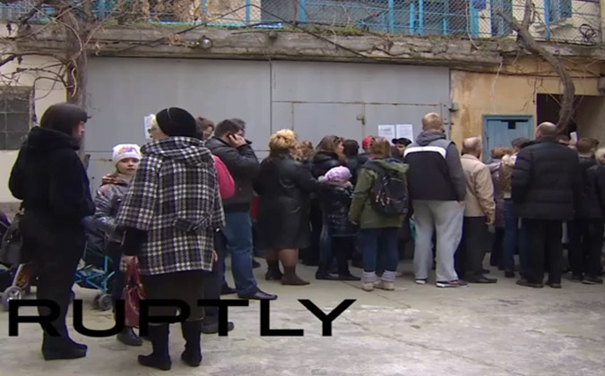 Στο Περεβαλνόγε, ένα μικρό χωριό βορειοανατολικά της Συμφερόπολης στο οποίο υπάρχει μια στρατιωτική βάση και κατοικίες των στρατιωτικών και των οικογενειών τους, σχηματίστηκαν ουρές ανθρώπων