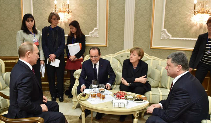 Την επίτευξη συμφωνίας για εκεχειρία στην Ουκρανία από τις 15 Φεβρουαρίου, ανακοίνωσαν έπειτα από συνομιλίες 16 ωρών οι πρόεδροι της Ρωσίας Βλαντίμιρ Πούτιν, της Ουκρανίας Βίκτορ Ποροσένκο, ο πρόεδρος της Γαλλίας Φρανσουά Ολάντ και η καγκελάριος της Γερμανίας Άνγκελα Μέρκελ.