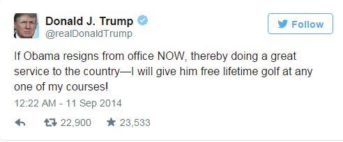 Για τον Ομπάμα: «Αν παραιτηθεί από τη θέση του ΤΩΡΑ, προσφέροντας μία σπουδαία υπηρεσία στη χώρα, θα τον αφήσω να παίζει δωρεάν