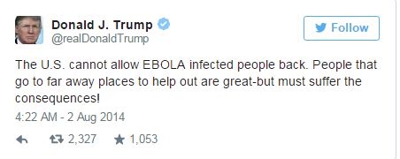 Για τα θύματα του Έμπολα: «Οι ΗΠΑ δεν πρέπει να επιτρέψουν σε μολυσμένους ανθρώπους να γυρίσουν πίσω στην πατρίδα. Όσοι πάνε σε μακρινά μέρη για να βοηθήσουν είναι σπουδαίοι, αλλά πρέπει να υποστούν τις συνέπειες»