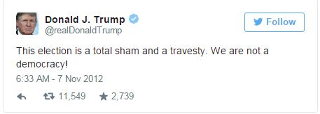Για το πολιτικό σύστημα της Αμερικής, στο οποίο φιλοδοξεί να μετέχει: «Αυτές οι εκλογές ήταν σκέτη απάτη. Δεν είμαστε δημοκρατία!»