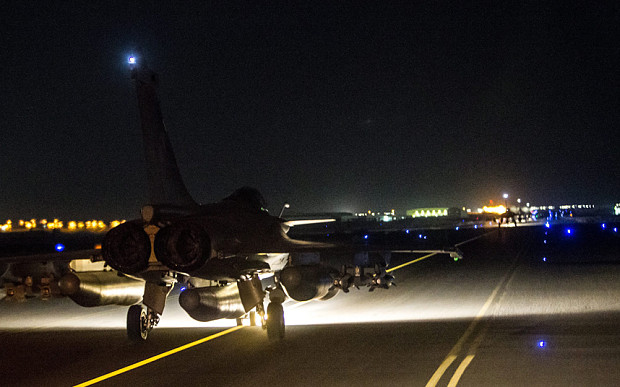 Σφοδρούς βομβαρδισμούς στην «πρωτεύουσα» του Ισλαμικού Κράτους εξαπέλυσαν αργά το βράδυ της Κυριακής γαλλικά πολεμικά αεροσκάφη.