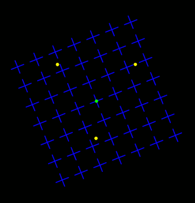 Καθώς εστιάζει κανείς στην πράσινη κουκκίδα που βρίσκεται στο κέντρο και ενώ το πλέγμα περιστρέφεται οι τρεις κίτρινες κουκκίδες που βρίσκονται περιμετρικά της κεντρικής μετά από 10 δεύτερα εξαφανίζονται. Αν όμως απομακρύνεις το βλέμμα σου από το κεντρικό σημείο τότε και οι τρεις τελείες εμφανίζονται και πάλι στη θέση τους.