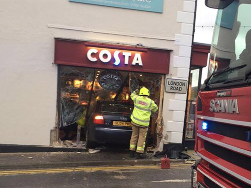 Ένας σπουδαστής που βρέθηκε στο σημείο, έγραψε στο Twitter: «Ολόκληρο το αυτοκίνητο μπήκε μέσα στο Costa καφέ, ολόκληρο το αυτοκίνητο είναι μέσα. Παντού ακούγονται σειρήνες».