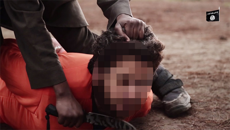 Το βίντεο τελειώνει με την τυπική κατάληξη που έχουν όλα αυτές οι νέες μέθοδοι προπαγάνδας. Το μικρό παιδί παίρνει μία βαθιά ανάσα, και σηκώνοντας το μαχαίρι κόβει το κεφάλι του άτυχου κρατούμενου, χωρίς τον παραμικρό ενδοιασμό. Στην συνέχεια μάλιστα, η κάμερα τον καταγράφει να κρατά το κομμένο κεφάλι και να απομακρύνεται έχοντάς το κρεμασμένο στην πλάτη του.