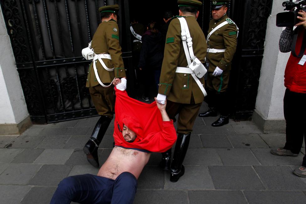 Με πορτοκαλί καπέλα του μπέιζμπολ και τσάντες στην πλάτη, οι φοιτητές πέρασαν την είσοδο του Palacio de la Moneda στο κέντρο του Σαντιάγο κρατώντας φωτογραφικές μηχανές στα χέρια. Όταν έφθασαν στον κεντρικό προαύλιο χώρο του μεγάρου, ξεδίπλωσαν ένα πανό με το σύνθημα «Μάθετέ το: Η επίθεση ξεκινάει σήμερα».