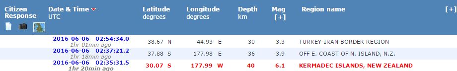 Σεισμός μεγέθους 6 βαθμών της κλίμακας Ρίχτερ έγινε σε απόσταση 143 χλμ., νότια-νοτιοδυτικά της νήσου Ραούλ στη Νέα Ζηλανδία σήμερα τα ξημερώματα, σύμφωνα με το Γεωλογικό Ινστιτούτο των ΗΠΑ.