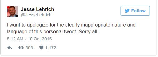 Ωστόσο, μετά το tweet του Jesse Lehrich, ο Brian Fallon, γραμματέας της εκστρατείας της Χίλαρι Κλίντον δήλωσε πως το συγκεκριμένο tweet δεν έχει καμία θέση στην εκστρατεία τους και «ζήτησε συγγνώμη όπως θα έπρεπε».