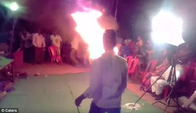 Σοκ προκαλούν οι εικόνες που δείχνουν έναν Ινδό να βάζει φωτιά στον εαυτό του μπροστά σε τουλάχιστον 50 ανθρώπους όταν η σύζυγός του αρνήθηκε να υπακούσει στην επιθυμία του να σταματήσει το τραγούδι πάνω σε μια σκηνή.