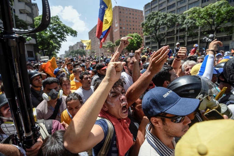 Σε έναν από τους κεντρικότερους αυτοκινητοδρόμους στο Καράκας, μονάδες της Εθνοφρουράς έκαναν ρίψεις δακρυγόνων για να απωθήσουν τους διαδηλωτές, που τους πέταγαν πέτρες και μπουκάλια.