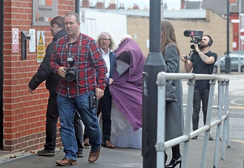 Αν και στις φυλακές έφτασε με μωβ κουβέρτα στο κεφάλι η Πόλα είχε ποζάρει πριν την τελετή με το νυφικό της